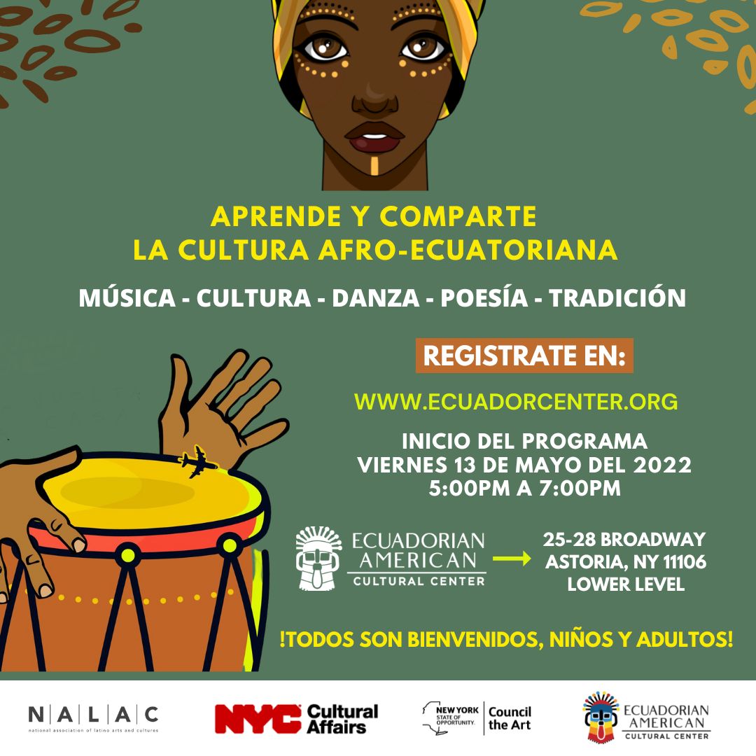 Este programa se enfoca en aprender y compartir la cultura Afro-ecuatoriana con adultos y niños. En el transcurso de varias semanas trabajaremos con artistas invitados, los cuales nos ayudarán a enriquecer nuestros conocimientos artísticos.